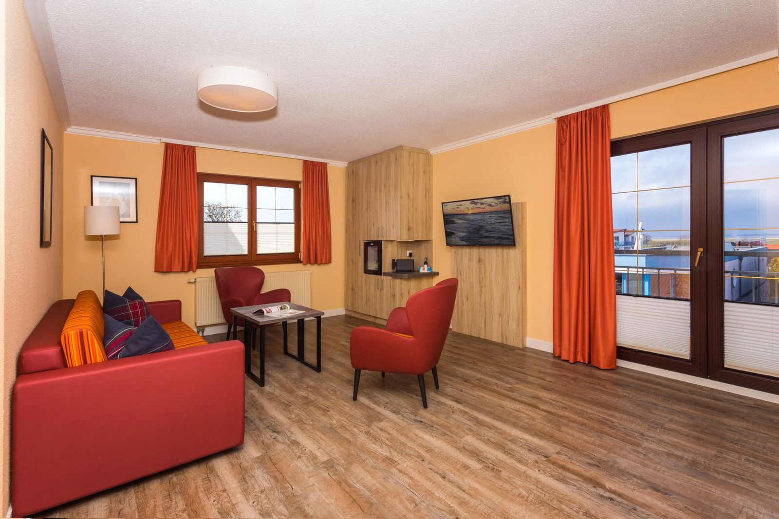 - Das luxuriöse Penthouse kann für bis zu 8 Personen gebucht werden. Im 175 m² umfassenden Penthouse entspannen Sie auf der großen Terrasse mit Blick aufs Achterwasser.