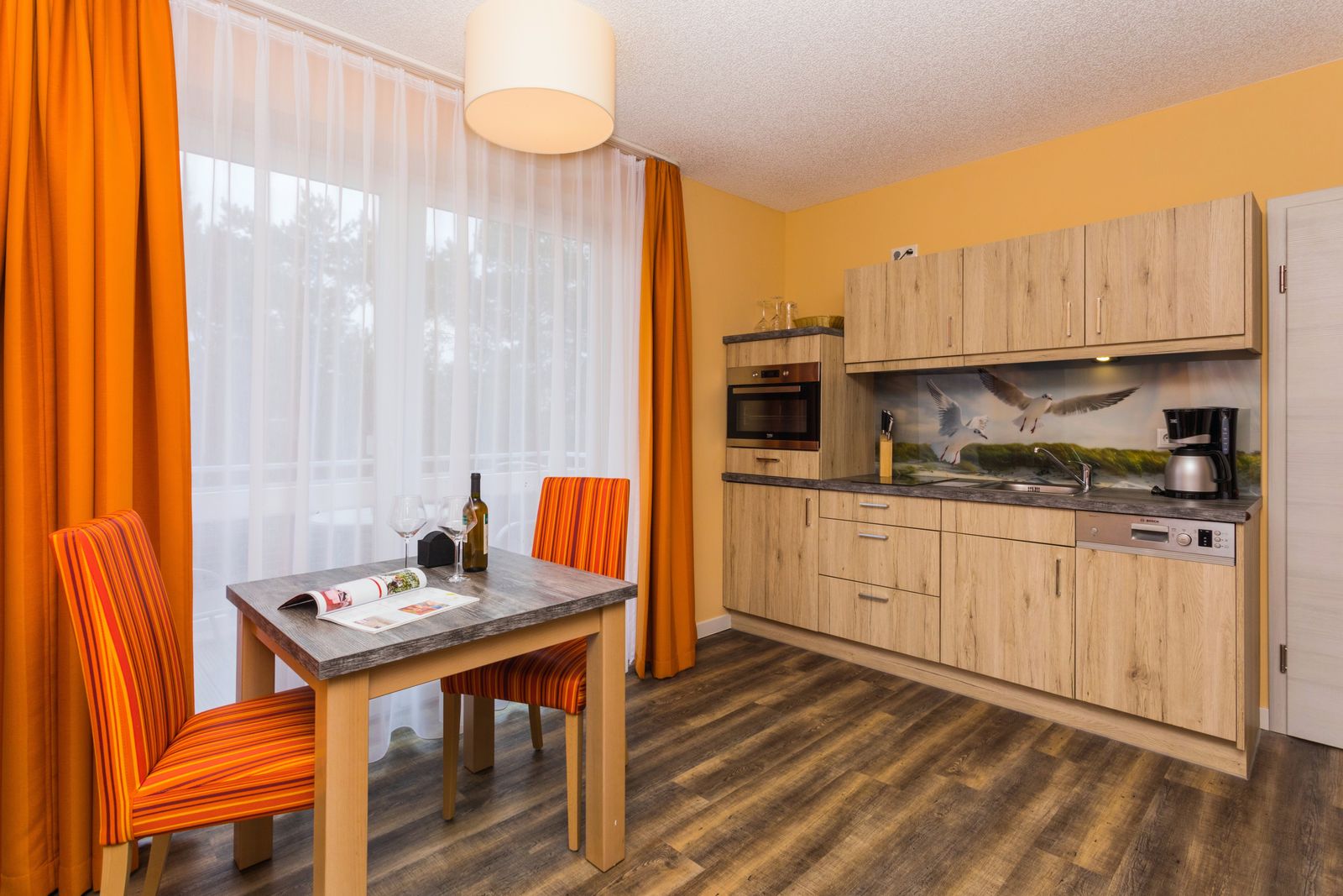- Komfortabel eingerichtete Küchen mit Herd, Backofen, Spülmaschine, Kaffeemaschine, Wasserkocher und Toaster