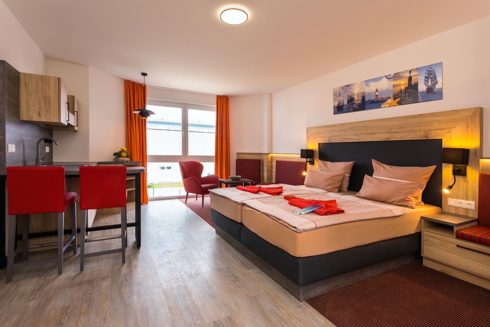 Genießen Sie Ihre Ferienwohnung mit Selbstverpflegung in Kombination mit den Annehmlichkeiten eine 4 Sterne Hotels, wie z.B. den Schwimmbad- und Saunabereich. Zudem haben Sie als Gast eines Appartements die Möglichkeit, weitere Leistungen wie Hotel-Frühstück und Reinigungsservice zu erhalten.