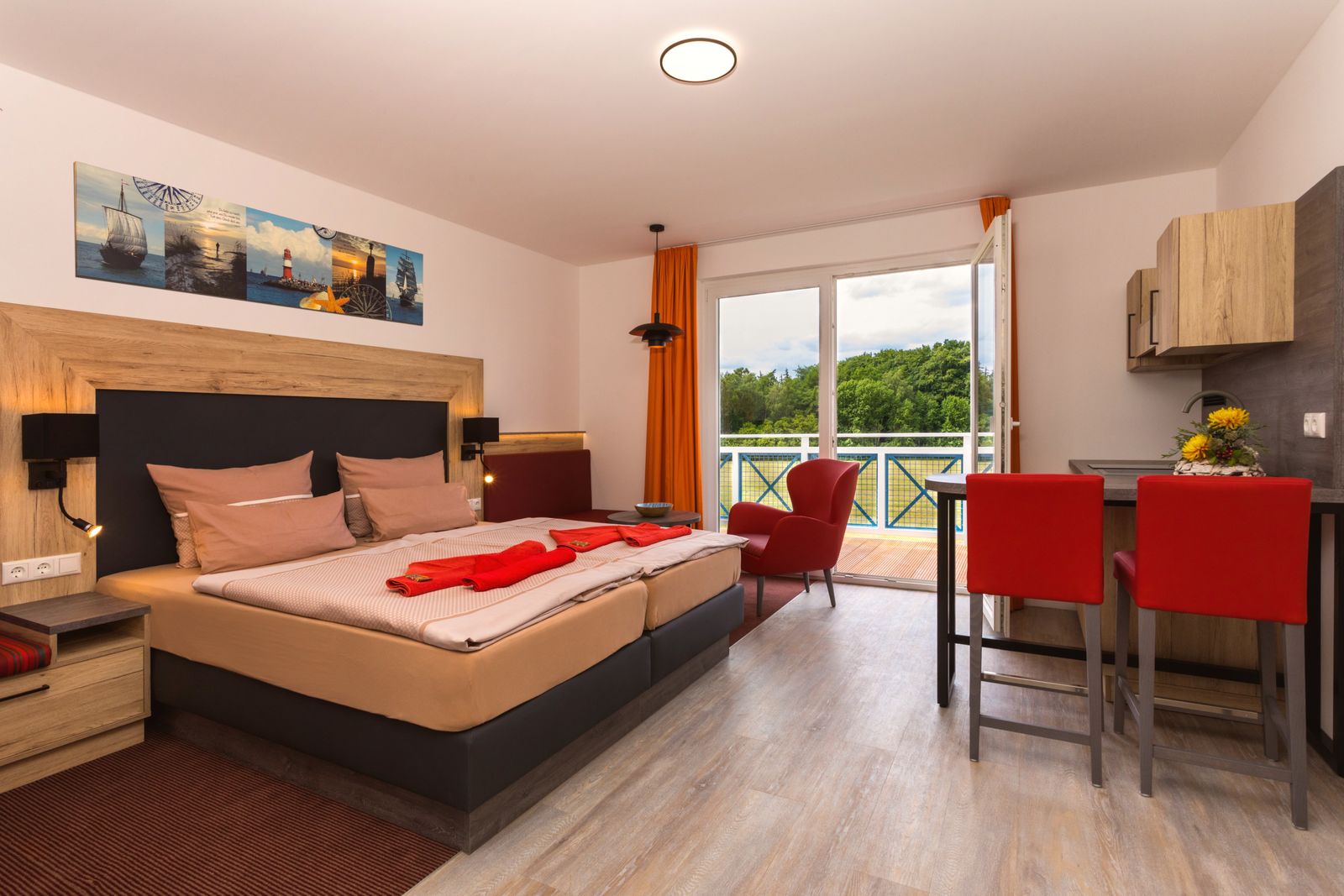 Sie suchen eine Ferienwohnung auf Usedom? Zum 12.000 m² großen Areal der Hanse-Kogge zählen zwei Gebäude mit 21 Ferienwohnungen mit integrierter Wohnküche sowie das 175 m² große Penthouse als Highlight.