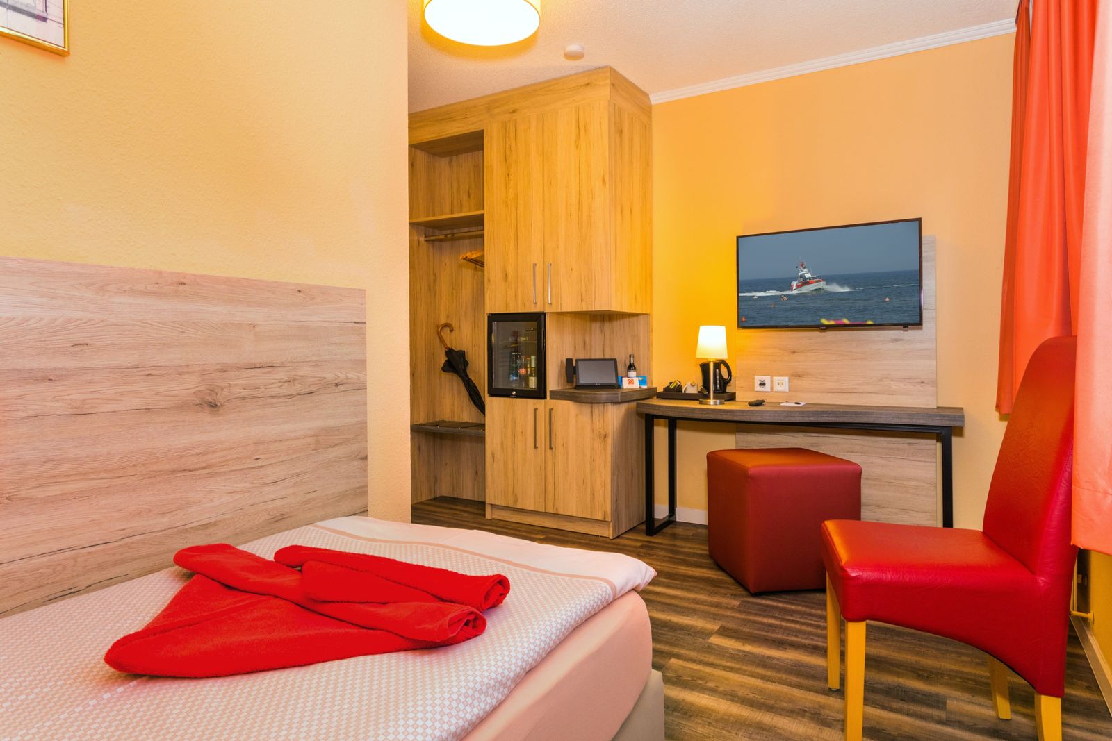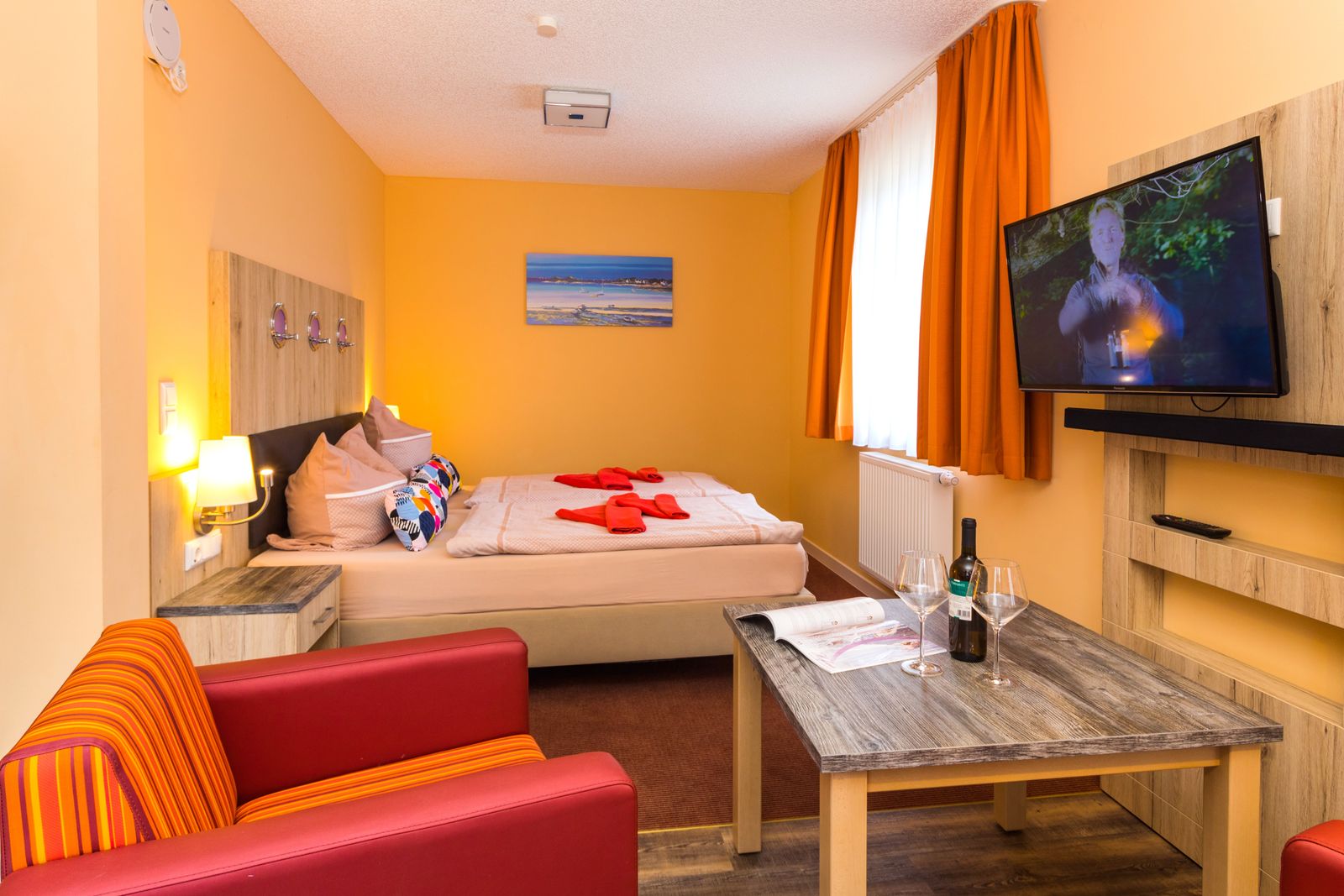 Alle Zimmer sind mit Badezimmer, Tablet, Minibar, Flatscreen-TV, Kaffee- und Teestation, Safe und Fön ausgestattet. Unsere neuen Studio-Zimmer verfügen zudem über eine Frühstücksküche.